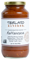Terlato Kitchen Puttanesca sauce is made in small batches using only the most flavorful and highest-quality ingredients. Our Puttanesca combines flavorful San Marzano tomatoes and imported Italian extra virgin olive oil, with the brightness of Kalamata olives, whole capers, and a touch of spice. We carefully craft each batch to seal homemade freshness and unparalleled taste in every bottle. Simply simmer and serve. Toss with pasta, or serve over chicken or fish.