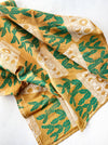 Hand dyed in a mustard yellow, and printed with a fun plant pattern.